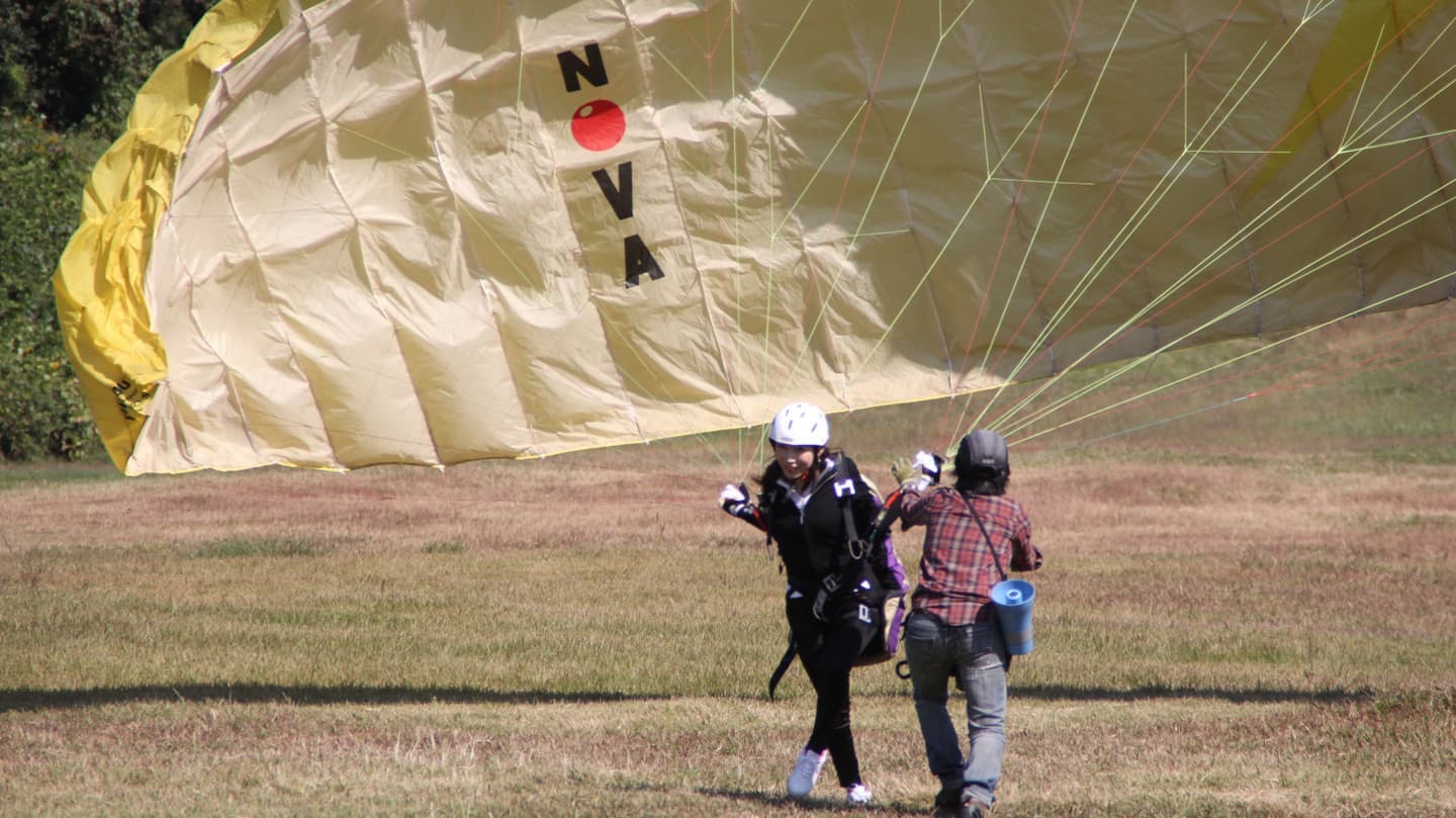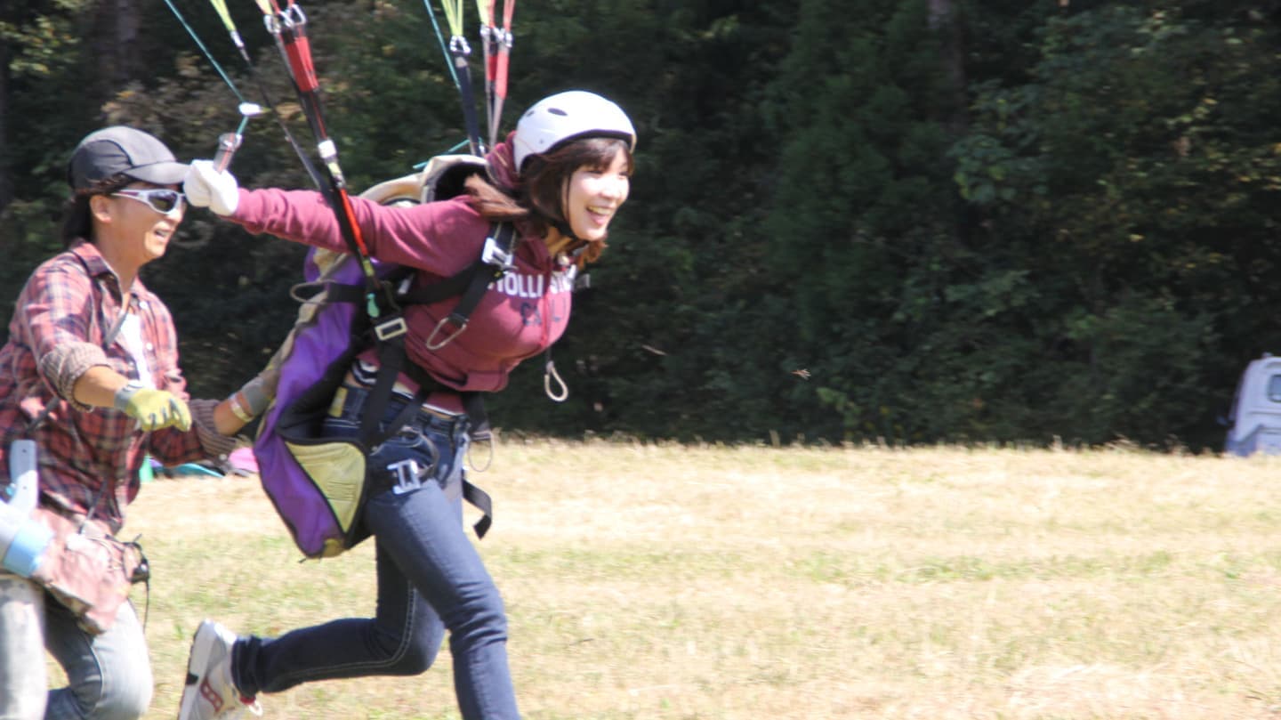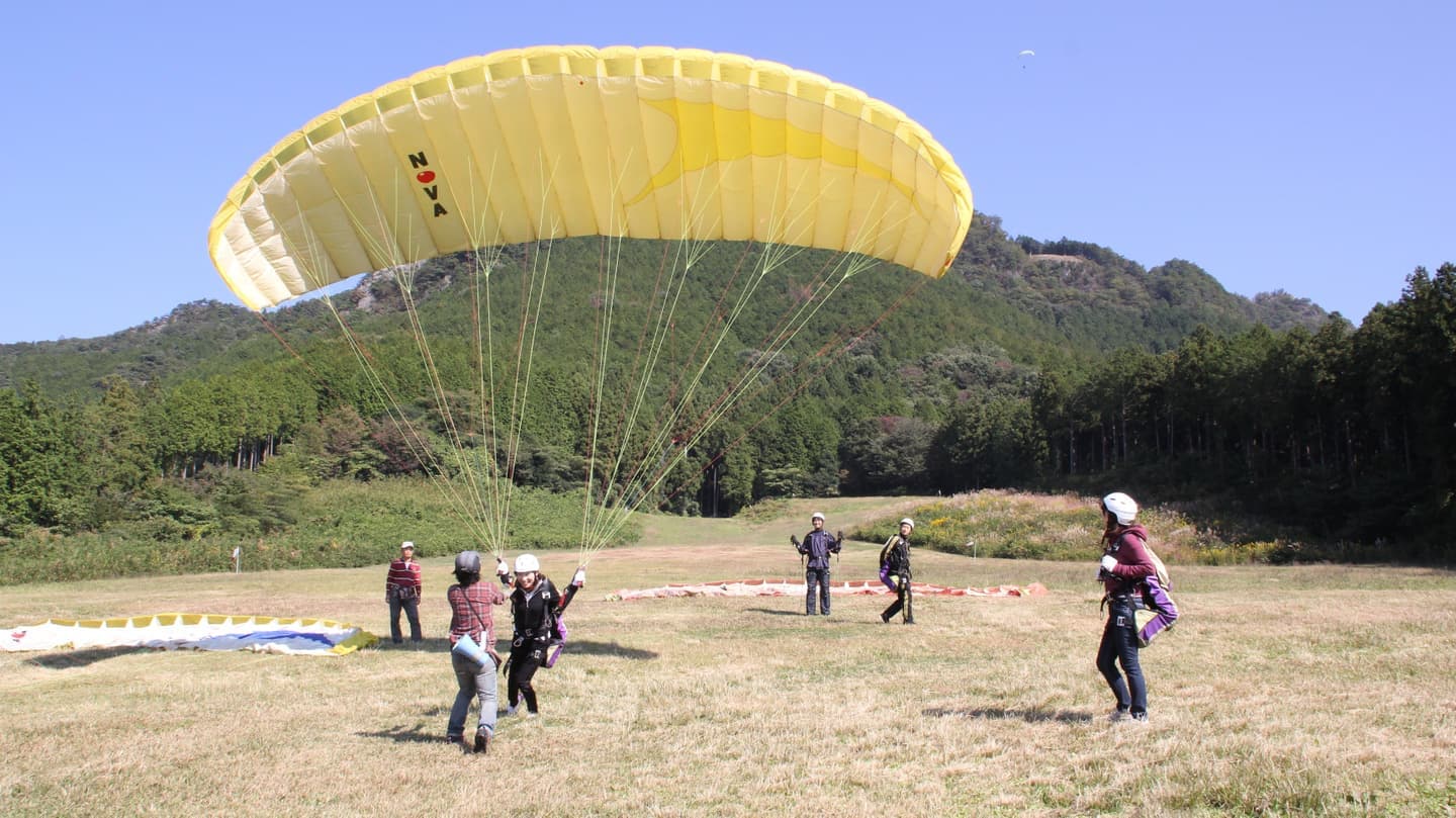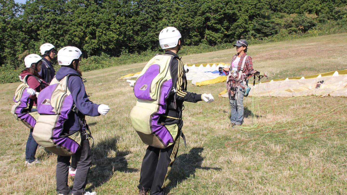 パラグライダーがどんなものか、とりあえず試してみたい、という方へのお気軽お試しコースです。緩斜面(地上)でふわっと浮く浮遊感覚が楽しめます。